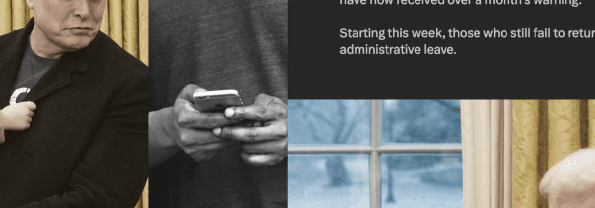 Beeld: Momus (obv Wikimedia (White House, 2025), Pixabay (Pexels 2016) en Musk’s X account (24 feb 2025)