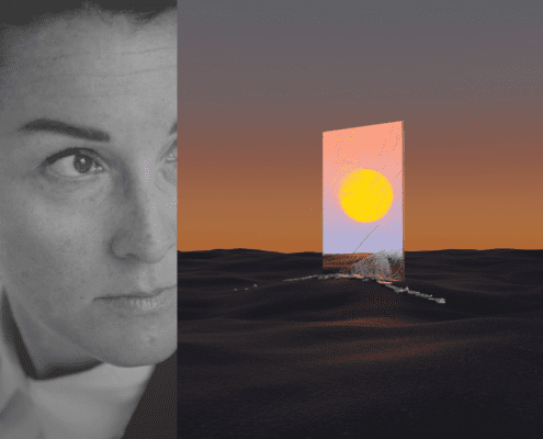 Beeld: Pixabay (https://pixabay.com/illustrations/ocean-sunset-mirror-reflection-6507058/) en Wikimedia (https://commons.wikimedia.org/wiki/File:Cathrine_Gyldensted_2021.png)
